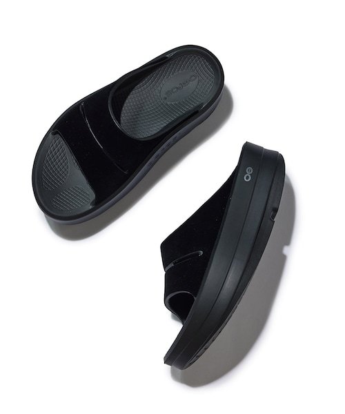 【デザイン・シルエット】 ・リカバリーシューズブランド【OOFOS/ウーフォス】のウィメンズ限定モデル「OOmega OOahh Limited」。 ・脚長効果を期待できる厚底タイプ。 ・秋も取り入れやすいベロアのアッパー。 ・衝撃を吸収するOOfoam(TM)を15mmも増やしています。 【カラー】 ・ブラックのみの展開。 【スタイリングポイント】 ・ニットパンツにフレアパンツなどを合わせて、ラグジュアリーにコーディネート。 ----------------------------- メーカー品番 ブラック(01):2000880147242/Posh Black メーカーサイズ 23cm=M4W6 24cm=M5W7 ----------------------------- ※撮影時の光、お使いのモニター環境によって色の見え方が違う場合がございます。 ※こちらはバイイング商品です。追加分より一部店舗とオンラインではJ'aDoRe JUN ONLINEでの展開となります。 ※全米足病医学協会(APMA)の許可プログラム:足の健康に有益且つ一定の効果が認められ、足病医(ポドロジスト)による審査を通過した製品のみに与えられる認証。 : 【OOFOS/ウーフォス】 2011年にアメリカのマサチューセッツ州でスポーツ選手やトレーナー、大手シューズメーカーの製品開発に携わるベテランチームにより 2年半の歳月をかけ開発されたリカバリーシューズブランド。 OOFOS製品に使われている特殊素材"OOfoam"は、前進力を生む事を目的とした一般的なEVA素材のミッドソールと異なり、 衝撃の反発を37%抑えることができ着地による足裏への衝撃を軽減することができます。