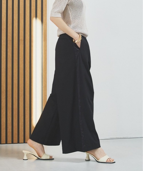 ーーー ◆Textile◆ 二種類の異なる番手の糸を使用し、表情感を出したカラミ風素材。 メッシュ組織で通気性が良く、ドライタッチな着心地です。 程よいハリのあるメモリー感が自然なシルエットを生み出します。 ◆Design◆ ボリュームがありつつも、軽やかな穿き心地のワイドスラックス。 素材の特徴を活かして、ミニマルなデザインに仕上げています。 サイドラインに使用したサテン生地がシャープさと大人の女性らしさを演出します。 裏地なしで薄手の軽い素材感で、暑い季節でもさらっと穿ける1本です。 ラフにお召しになれるルーズシルエットが抜け感のある大人の着こなしへと導きます。 ーーー ◆Styling◆ Tシャツやシャツなどお手持ちのベーシックアイテムと合わせてワンランク上のスタイリングに。 ワンピースやチュニックの下からサテンのサイドラインを覗かせるのも◎ 同素材でお作りしたジャケット(991232)とのセットアップもおすすめです。 【STERNBERG(スタンバーグ)】 デザインやパターンの工夫で着る人の個性を引き出す、コンテンポラリーなファッションを提案します。 fatefully「一枚の服が一日を変える。一枚の服で一日が変わる。」 ■商品のお気に入り登録(♡をクリック) ・ラスト一点、再入荷、セール時の通知を受け取れます。 ・クーポンやタイムセールの通知を受け取れます。 ・お気に入り商品を一覧でご覧になれます。 ■ブランドのお気に入り登録 ・新作やイベントなどブランドのお得な情報を受け取れます。