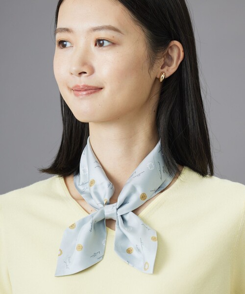 さっとループに通すだけ!上品さが映える、シルク100%のスカーフ ■デザイン コーデにプラスして頂くだけでおしゃれこなれ感を出してくれるスカーフ。スカーフの扱い方が分からない、巻くのが苦手という方におすすめです。 巻き方は、 1.ループが付いている方の先端をループに通す 2.そのまま首に巻いて頂き、もう片方の先端を、1で通した方とは反対側から通す (2. そのまま首に巻いて頂き、もう片方の先端を1と同じ方向から通して頂いても可愛いです) 簡単にコーディネートでき、着用して頂くだけで鮮度が上がるアイテムです。ピンク(#312)とブルー(#370)はドットにJ.PRESSのモノグラムロゴを控えめにあしらった、合わせやすいデザイン。ライトグレー(#503)とネイビー(#575)はコインやチェーンをプリントしたトラディショナルな雰囲気で、巻くだけでコーディネートが華やかになります。 ■素材 シルク100%の上質な素材で、程よいハリ感と落ち感のあるツイル織をしています。シルクなので肌触りもよく、ストレスなくお使い頂けます。 ※商品画像はサンプルを使用しているため、色味やサイズ等の仕様に変更がある場合がございますので、予めご了承ください。 洗濯表示 【本体のみ】洗濯不可 漂白不可 タンブル乾燥不可 アイロンは110℃まで、スチーム不可 弱いドライクリーニング(石油系)可 ウェットクリーニング不可