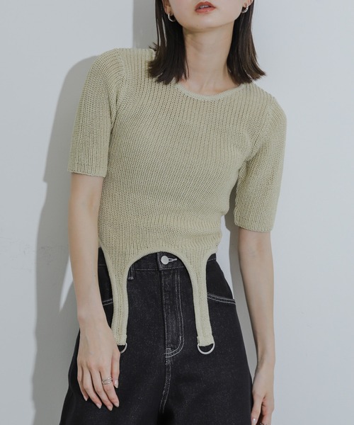トレンドの夏トップス 〇トレンドのガーターデザイン 〇目を惹くMIXカラー 〇ドライタッチな素材で夏場でも快適 styling ガーターデザインを目立たせる為に全体的にコンパクトなサイズ感にしているのでハイウエストのスカートやパンツと合わせていただくとスタイルアップ効果もありオススメです。 【2024 Spring/Summer】【24SS】 総重量 : 約250g ※商品画像は、光の当たり具合やパソコンなどの閲覧環境により、実際の色味と異なって見える場合がございます。予めご了承ください。 ※商品の色味の目安は、商品単体の画像をご参照ください。 ▼お気に入り登録のおすすめ▼ お気に入り登録商品は、マイページにて現在の価格情報や在庫状況の確認が可能です。 お買い物リストの管理に是非ご利用下さい。 素材感 透け感 : ややあり 伸縮性 : ややあり 裏地 : なし 光沢 : なし ポケット : なし one