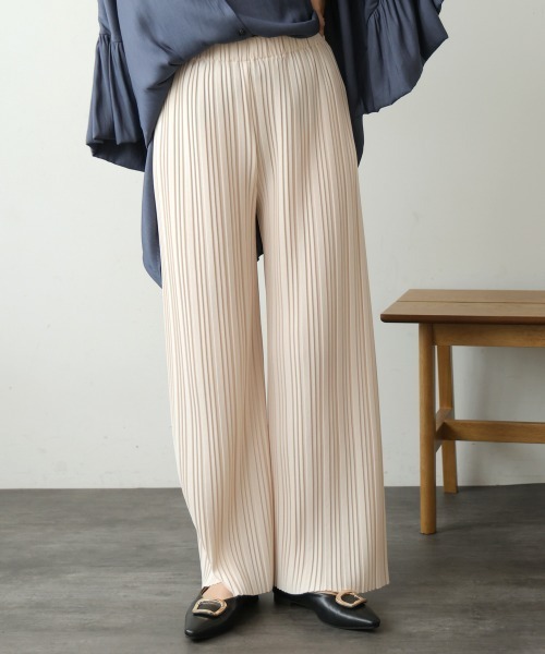 ■POINT シンプルでどんなトップスにも合わせやすい万能プリーツパンツです。伸縮性のある生地を使用し履き心地の良さにこだわった一枚に仕上がりました。 ■FABRIC ジャブジャブ洗える素材で型崩れもしにくいのでお手入れが簡単なのも魅力です。お出掛けから普段使いまで幅広いシーンで着られるので色違いで揃えたくなる使いやすさが特徴です。 ………………… 透け感:なし 裏地:なし ………………… ★商品のお気に入り登録 登録すると、完売しても再入荷時に通知を受け取ることができます。 ほかにもお得な特典があるかもしれません♪ ★ブランドのお気に入り登録 新商品や再入荷などの情報を受け取ることができますので、是非ご登録ください♪