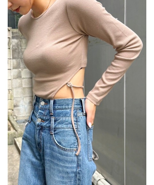 ボディスーツの様に着られるトップスです。 実際には繋がっていないので着脱も楽でオシャレに着れる1枚です。 バックスタイルに通したストラップもデザインポイント。 カラーバリエーションはベーシックなので、インナーとしても使えます。