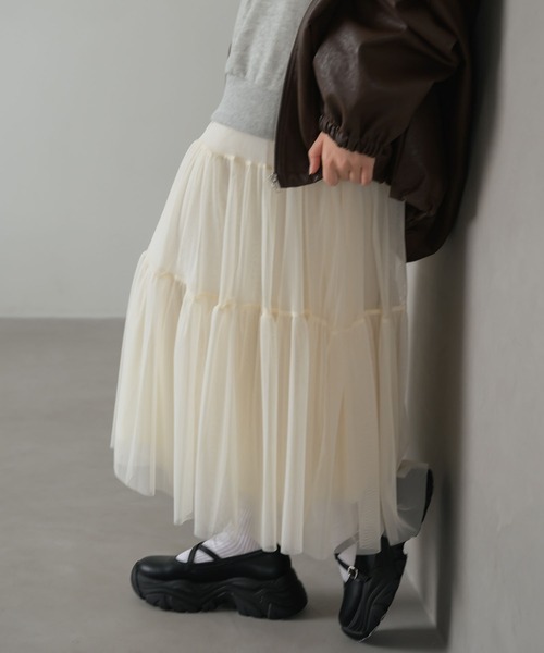 〈ボリューム感たっぷりの甘めチュールスカート〉 ▼デザイン 女の子らしくて可愛いデザインのチュールスカート! ティアードデザインで、女性らしいAラインシルエットに。 レイヤードされたボリュームたっぷりのチュールは どんなコーデにも甘め要素をプラスしてくれます。 ▼コーディネート シンプルにニット合わせで甘めスタイリングに♪ トレーナーやレザージャケットのかっこいいスタイリングにも合わせやすいです。 ------------------------------ 生地感:普通 伸縮性:ある 透け感:なし(ホワイトのみ多少あり) 裏地:ある ------------------------------ ▼ブランド紹介 RETRO GIRL (レトロガール) 自分らしい“ベーシックアイテム”と 新しい自分の”トレンドアイテム”が 見つかる場所 今らしいファッションを楽しむ 女性のためのブランド #スカート #大人ガーリーコーデ #大人ガーリー #チュールスカート #レイヤードスカート #チュール #デートコーデ ▼注意事項 ※撮影環境やモニター環境によって実際の商品とお色味が 多少異なってみえる場合がございます。 品番:RA516731B001 / 品名:ティアードチュールスカート