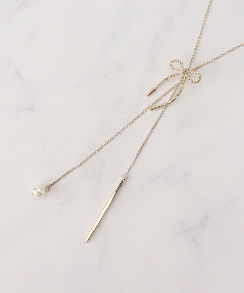 【デザイン】動きのある結びリボンパーツにパール調パーツを掛け合わせたゴールドロングネックレス。ラリエットタイプなのでお好みの長さで着用して頂けます◎※照明の関係により、実際よりも色味が違って見える場合があります。また、パソコン・スマートフォンなどの環境により、若干製品と画像のカラーが異なる場合もございます。店舗へのお問い合わせ商品番号:508-09302●製品寸法:00:全長68cm モチーフH3.5cm モチーフW2cm備考: