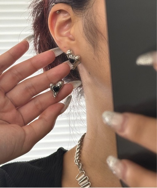 ■design ・シルバーとブラックの組み合わせが、可愛くなりすぎずモードな雰囲気にも なるハートのピアス。 ・少し大きめのサイズ感で、顔回りを華やかに見せてくれます。 ■サイズ 縦:2cm 横:1.5cm ■その他 ※撮影環境やご覧のモニター環境によって、実物と多少色味が 異なって見える場合がございます。 ※サイト上のカラー名と、お届け商品に記載されているカラー名が異なる場合がございます。 《商品のお気に入り登録》《ブランド登録》がオススメ! ■商品のお気に入り登録 ハートマークをクリックしてお気に入りに登録。 完売カラーの再入荷通知や、ラスト1点の通知、セールやクーポン通知も受け取ることができます。 ■ブランドのお気に入り登録 新商品や再入荷等、いち早くブランドのお得な情報を受け取ることができます。