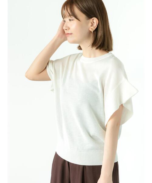 フレアなスリーブが優しげな表情を演出するニット。 肩周りや二の腕を華奢な印象に見せてくれるのもうれしいポイント。 シンプルなデザインで着回し力も高く、カジュアルからキレイめにと、幅広く活躍してくれるアイテムです。 ※商品画像は、撮影環境やお客様のご利用のPC・スマートフォンのモニター環境などにより実物と色味に差異がある場合がございます。