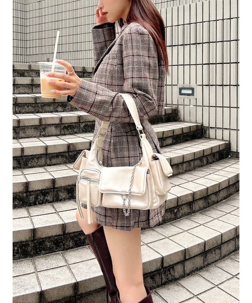 トレンドのラウンド型ハンドバッグが登場▽デザイン▽外側にはポケットが4つ付いており、内側にもチャック付きポケットがあるので収納性抜群のハンドバッグ。柔らかいフェイクレザーでコンパクトな見た目に反して大容量!チェーンを付けたことでスタイリングのワンポイントになります◎チャームやキーホルダーをつけることでさらにトレンド感UP!▽カラー▽白・黒のベーシックカラー。