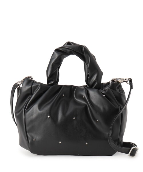 【デザイン】 ころんとしたサイズ感とトレンドのスタッズがかわいらしいミニトートです。 取り外し可能なショルダー紐を付けていますのでスタイリングによって手持ちかショルダーかで合わせていただけます。 キラッとしたスタッズデザインなのでシンプルなスタイリングに取り入れるだけでポイントになります。 ※ポケット数:内側×1 【機能】 取り外し可能なショルダー紐を付けておりますので2WAYでご使用いただけます。 ※照明の関係により、実際よりも色味が違って見える場合があります。また、パソコン・スマートフォンなどの環境により、若干製品と画像のカラーが異なる場合もございます。 店舗へのお問い合わせ商品番号:C70-09036 ●製品寸法: 00:高さ17cm 幅(上部)22cm 幅(下部)20cm マチ8cm 持ち手上がり9cm 付属ショルダー対応サイズ65~125cm 備考:重量:約200g