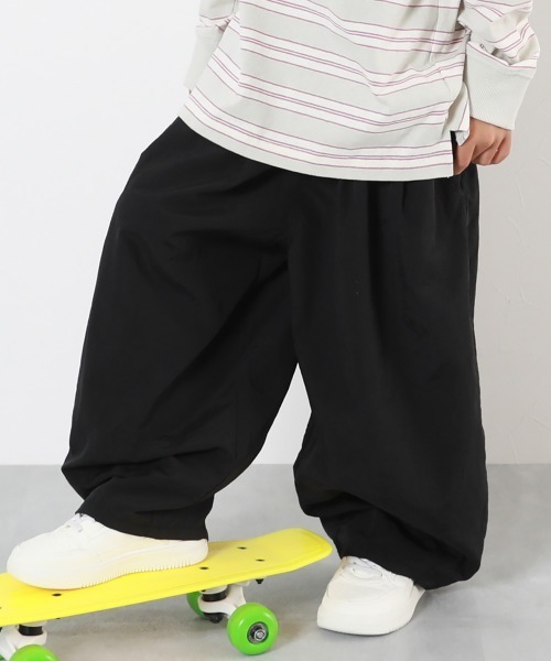 こなれ感のある着こなしが楽しめる『ナイロン サーカスパンツ』 タックの入ったワイドシルエットのサーカスパンツが新登場。 ナイロン素材なので軽い着心地なのも魅力です。 ■素材 さらっとした肌ざわりが心地良い、ナイロン素材 少し表面感のある、シャカシャカとした風合いが特徴。 程よい厚みがあり、長いシーズン着まわしやすい素材です。 伸縮性:なし ■スタイリング ゆるっとしたボトムスを合わせてゆる×ゆるコーデを楽しむのはもちろん、クロップド丈のトップスなどを合わせてメリハリのあるスタイリングに仕上げるのもおすすめです。 ■洗濯方法 洗濯機洗い可(弱い洗濯処理) / 漂白剤使用不可 / 乾燥機使用不可 / 日陰つり干し/ 洗濯ネット使用 ■ご注意事項 ・摩擦や水、汗などで色が移ることがあります。ご注意ください。 ・平置きにて採寸しているため、サイズや形に多少の誤差が生じる場合がございます。あらかじめご了承ください。 ・生産時期により、多少色味が異なる場合がございますが、素材・サイズ等の品質に違いはございません。 ー devirockについて ー 子育てがもっと楽しくなる社会を目指し、親と子が感じる課題を解決する""新しいあたり前""を提案しています。 男の子・女の子のデイリーウェアを中心にラインナップ。ベーシックからトレンドまで幅広いデザインと、ベビーからキッズまでの豊富なサイズ展開が魅力の子供服ブランドです。