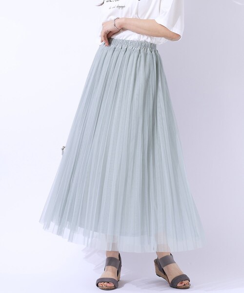 【デザイン】 女性らしさがあふれるチュール素材を使用したプリーツスカート。 動くたびにプリーツがきれいな陰影を映し、ドレッシーな装いにもおすすめの一枚。 さらに、ウエストゴム仕様で楽に穿いていただけます。 ほんのり甘さをプラスしたい、大人の女性にピッタリなスカートです。 ※ポケットなし 【スタイリング】 きれいめなブラウスやカットソーと合わせた王道の上品コーデはもちろん、 Tシャツ合わせでカジュアルダウンしたスタイルもおすすめです。 秋に向けては、長袖のブラウスやニットなどに足元にはブーツを合わせてロングシーズン活躍してくれるアイテムです。 【お客様からいただいたコメント】 ・こちらのスカートは、色が可愛い。 同系色のトップスや、オフホワイトに合わせたいと思い2色購入いたしました。 初めてチュールスカートを買いました。大人でも着られるスカートに出会えて嬉しいです。 (身長:155cm 体型:ふっくら ブルーとチャコールグレーのLサイズ購入) とのお声を頂戴しております。 【素材】 ソフトタッチのチュール素材を使用。 チュール素材2枚重ねで外側のみプリーツ加工有り。 ※裏地あり ※ブルー(091)はやや透け感があるため、インナーの着用をおすすめします。 ※照明の関係により、実際よりも色味が違って見える場合があります。また、パソコン・スマートフォンなどの環境により、若干製品と画像のカラーが異なる場合もございます。 モデル情報:身長163cm B81 W59 H88 着用サイズ:02(M) 店舗へのお問い合わせ商品番号:741-79014 ●製品寸法: 02(M):W66~76cm H92cm 総丈85cm 03(L):W68~78cm H101cm 総丈86cm 04(LL):W70~80cm H110cm 総丈88cm 備考: