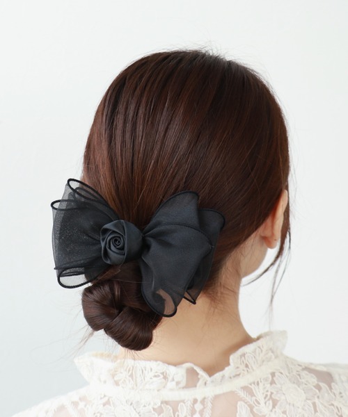 ■トレンドのローズモチーフヘアゴム■今季トレンドのローズモチーフのヘアゴム立体的なバラモチーフがオーガンジーリボンに添えられ、女性らしく上品な印象です♡これひとつでヘアアレンジのポイントに◎ラフなまとめ髪に1つ付けるだけで華やかに仕上げてくれます♪結婚式やパーティーなどのオケージョンシーンにもおすすめです!【結婚式/パーティ/フォーマル/入学式/卒業式/デイリー】※撮影場所やお使いのモニター環境により実際の商品と若干お色味が異なる場合があります。 =======================《お気に入り登録》でお得な情報がたくさん!▼商品のお気に入り登録▼♡をクリックしてお気に入り登録をすると再入荷通知やラスト1点の通知をお知らせします。▼ブランドのお気に入り登録▼お気に入りショップに追加していただくといち早く ThreeFourTime のお得な情報・新入荷情報を受け取ることができます。=======================