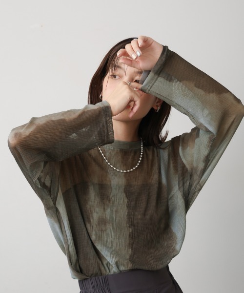 ■POINT 水彩柄のような大人っぽいプリントが魅力的なシアートップス。適度にゆとりのあるサイズ感でボディラインを気にせずお召し頂けます。すっきり見えの縦シボで生地に表情があり、コーディネートに取り入れるだけで一気にシャレ見えに!左裾だけスリットを入れ、抜け感のあるアシンメトリーデザインになりました。 ■FABRIC しっとり肌に馴染む楊柳の質感です。肌にあたる部分が少なく、暑い日でもさらっとお召し頂けます。 ………………… 透け感:あり 裏地:なし ………………… ★商品のお気に入り登録 登録すると、完売しても再入荷時に通知を受け取ることができます。 ほかにもお得な特典があるかもしれません♪ ★ブランドのお気に入り登録 新商品や再入荷などの情報を受け取ることができますので、是非ご登録ください♪