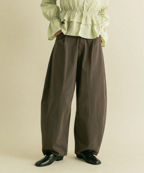 【リラックス感のあるスタイルが叶う、コクーンシルエットパンツ】コクーンシルエットが特徴的なデザインパンツ。程良くルーズなシルエットながらも、腰回りはすっきりとしているのでバランスの良い着こなしが叶います。バイオウォッシュ加工を施すことでヴィンテージ感のある雰囲気に仕上げました。COORDINATEパンツのシルエットが活きるよう、かっちりとしたジャケットやシャツを合わせるのがおすすめ。ショート丈のトップスを着るとスタイルアップ効果が抜群です。【2024 Autumn/Winter】【24AW】※この商品(CHARCOAL)は、汗をかいたり濡れた状態で、長時間日光に当たると、変色することがあります。汗が付着したり濡れた場合は、日光の下に放置したりせずに、速やかに洗濯するか、クリーニング処理をしてください。※商品画像は、光の当たり具合やパソコンなどの閲覧環境により、実際の色味と異なって見える場合がございます。予めご了承ください。※商品の色味の目安は、商品単体の画像をご参照ください。▼お気に入り登録のおすすめ▼お気に入り登録商品は、マイページにて現在の価格情報や在庫状況の確認が可能です。お買い物リストの管理に是非ご利用下さい。素材感透け感 : なし伸縮性 : なし裏地 : なし光沢 : なしポケット : あり