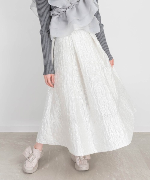 ◆2024AW新商品◆ 毎シーズン大人気のジャガードシリーズがアップデートして登場。 ブラックはフラワー柄を、ホワイトとグレーはローズモチーフ柄を採用。 秋冬のスタイリングに映える、重厚感のあるリュクスな1着に仕上げました。 POINT ・BLACKは存在感のある大人可愛いフラワー柄 ・WHITEとGRAYは今季トレンドのローズモチーフ柄 ・ボックスタックデザインで大人上品な広がりあるシルエット ・柔らかいジャガード生地で着心地も◎ ・ポケット付きなのも嬉しいポイント ・後ろゴム仕様でストレスフリーな着心地 COORDINATE 華やかなジャガードスカートは、シンプルなトップスを合わせてスカートを主役にしたスタイルがおすすめです。 - - - - - - - - - - - - - - - 洗濯方法:手洗い可 透け感:BLACKなし、その他ややあり 裏地:あり 伸縮性:なし 生地の厚さ:普通 - - - - - - - - - - - - - - -