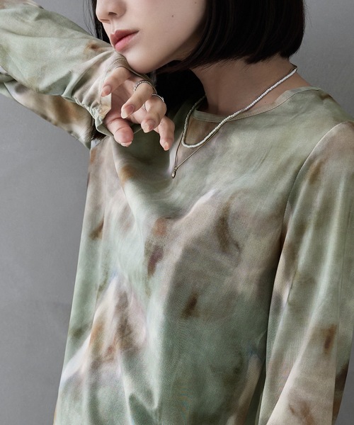 コーディネートに溶け込んでくれるクルーネックのシアープルオーバー。水彩画のようなニュアンス柄で、シンプルな装いに変化を付けモードな仕上がりへと導いてくれます。 袖口にシャーリングを施し、さりげない手元の動きも華やかに飾ってくれる優れもの。 内側にもチュールを重ねることで透け感が抑えられるため、肌感強めが苦手な方にもおすすめのアイテムです◎。 体にフィットするシルエットにさらっとしたラクな着心地は、 トップスとしてはもちろん、シャツやジャケットのインナーとしても使いやすく、ロングシーズン楽しめる着回し力の高い一枚です。 etoll. 「For me.」 気ままに自由な服選びで、私だけのファッションを楽しむ女性へ捧げるセレクトショップ。 系統に捉われず、気分を高めたい日や特別な日、 いつでも私の好きを身につけましょう。 自分自身のためにお洒落をしたい気持ちを大切に、 豊かな個性とトレンドを取り入れたアイテムで、少しだけお手本になるようなスタイリングを提案します。 【備考】 ・伸縮性あり ・透け感あり ・手洗い可 【もっとお買い物を楽しんで頂く為に】 ▼商品のお気に入り登録 お気に入りアイテムの値下げ・再入荷・在庫1点などの通知を受け取ることができます。 ▼ブランドのお気に入り登録 新作アイテム入荷や人気商品の再入荷、タイムセールやクーポンなど、いち早く「bflat」のお得な情報を受け取ることができます。