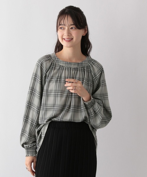ふんわり袖で、華やか見え。気になる腕まわりをしっかりカバー。【素材】・型崩れせず、しわになりにくいのでお手入れが楽。・程よい光沢感とドレープ感で高見えします。・軽い着心地でさらっとした肌触り。【デザイン】上から被って着用できるのでノンストレスなアイテム◎程よくボリューム感のある袖回りや首回りのギャザーが印象的で、1枚でサマ見えするブラウスです。【スタイリング】デニムやスカートとの定番コーデはもちろん、きれいめのパンツと合わせてオフィスカジュアルとしても着回し可能です。キャミワンピやサロペットのインナーとしてもおすすめ◎-----------------------------透け感:やや透ける伸縮性:なし生地感・厚さ:普通裏地:なし-----------------------------※ライトグレーで計測しています。 ※こちらは参考情報となります。カラーにより多少の誤差がございます。【お買い物が便利になる機能がたくさん!】 ▼商品のお気に入り登録▼ 完売アイテムの再入荷通知、ラスト1点、またクーポンやお値下げ通知をお知らせします。 ▼ブランドのお気に入り登録▼ 新商品や再入荷のお知らせ等、いち早くブランドのお得な情報を受け取ることができます。ぜひご登録ください。