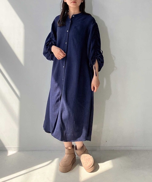 袖のクシュクシュとしたドロストデザインが魅力のAラインワンピ―ス くしゅくしゅとした袖のデザインが可愛いゆったりサイズのワンピ―スです。 ふんわりと女性らしく広がるスカートのフレアシルエットや、ゆとりのある袖は体型カバーにもピッタリ!! 大人っぽく上品な暗めのカラー展開に加え、バンドカラーで程よいきちんと感を演出。 目を惹くデザインだから1枚でサラッと着るのはもちろん、羽織りとしても使える万能アイテムです。 ▼商品について ・画像の商品はサンプルとなります。実際の商品と色味、仕様、加工、サイズ、素材等が若干異なる場合がございます。 ・サイト上のカラー名と、お届け商品に記載されているカラー名が異なる場合がございます。 ・商品の色味は、撮影場所や光のあたり具合などにより色味が違って見える場合がございます 。また、お客様のお使いのPCのモニター環境などにより色味が違って見える場合がございます。予めご了承の上ご注文下さい。 ▼お取り扱いについて ・着用またはお取り扱いの際は、アテンションタグや洗濯ネームを必ずご確認ください。 ▼返品・キャンセルについて ・着用、洗濯後の返品は致しかねます。 ・商品到着後、着用前に商品を確認して頂きますようお願い致します。 ♪商品のお気に入り登録 お気に入り登録した商品は、ラスト1点になった時、完売商品の再入荷、セールになった時にお知らせします。 ♪ブランドのお気に入り登録 新商品の発売、再入荷、セール情報など、ブランドのお得な情報を受け取ることができます。