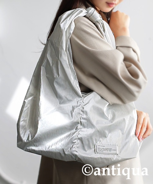\今までになかったカタチ。/ トレンド感あふれる『シルバートートバッグ』 最旬のメタリックカラーで、どんなコーデも一気に洒落る優秀バッグ。 ちょうどいいサイズ感で、お出かけにも普段使いにもピッタリなアイテム。 ≪DETAIL≫ ・他にない持ち手がリボンのデザイン。 ・持ち手の長さが調節できてアレンジ自在。 ・トレンドライクなメタリックカラー。 ・デイリー使いしやすい丁度良いサイズ感。 ≪FABRIC≫ ・派手すぎないメタリックのシルバーカラー。 ・さりげなく光るパールのような輝き。 ・丈夫で耐久性に優れたナイロン混素材。 【♡マークを押して、お気に入り登録を!】 『ラスト1点通知』、『再入荷通知』、『値下げ通知』など、お得な情報を受け取ることができます!! 気になったアイテムは今すぐ ”お気に入り登録” をお忘れなく★★