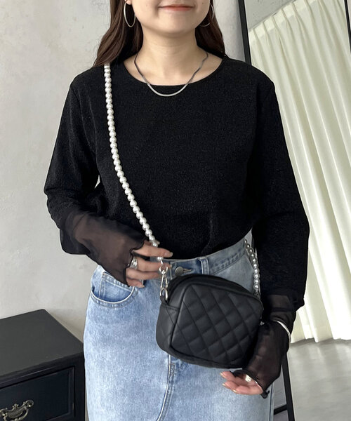 華やかなラメがコーデのアクセントになるトップス●暗くなりがちな秋冬コーデにラメがアクセントになってくれます●袖はシアー素材で抜け感◎●1枚で着てもビスチェやジレのインナーとしても◎●ゆったりなサイジングで腕のラインが出にくい◎ラメ/シアー/インナー/大人カジュアル/きれいめカジュアル--------------------------------------------------------------生地の厚さ:普通伸縮性:なし透け感:袖部分のみあり裏地:なし--------------------------------------------------------------※商品のお取り扱いに関しましては、商品に付属のアテンションカード、洗濯ネームをご覧ください。※撮影場所やお使いのモニター環境により若干お色味が異なる場合がございます。特にロケの撮影では明るく見える傾向にございます。 ※サイト上ではフリーサイズの表記ですが、商品タグにはMサイズと表記されている場合がございます。その場合、ワンサイズでのご用意となりますのでサイズミスなどではございません。詳しいサイズはサイズスペックをご確認いただきますようお願い致します。※サイト上でのカラー名とお届けした商品に記載されているカラー名が異なる場合がございますので予めご了承ください。<返品・キャンセルについて>・着用・洗濯後の返品は致しかねます。・商品到着後、着用前に商品を確認して頂きますようお願い致します
