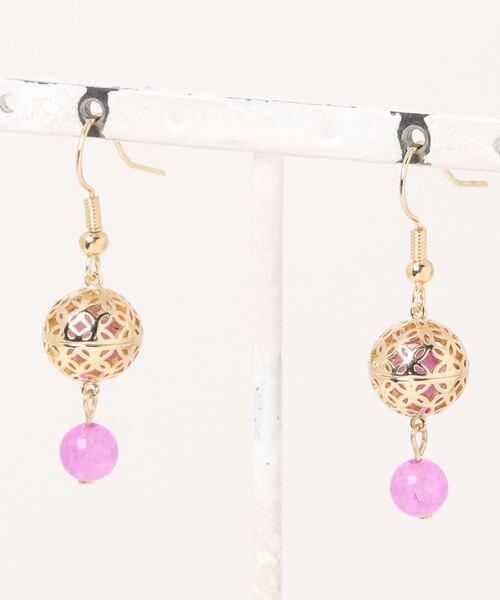 縁起の良い吉祥柄のゴールドパーツが上品なピアス。丸いガラス玉もポイント。さりげなく耳元で揺れて、上品な印象に◎ ●その他1【麻の葉】麻はまっすぐに伸びる様子から、健やかな成長を祈る吉祥文様。魔除け、繁栄の意味も◎ ●その他2【雪華】雪解け水は野山を潤し、豊作をもたらす。 ●その他3【七宝】輪が繋がる様子から、人との調和や円満の意味を持つ縁起柄。 ◆カヤ◆ 古くから伝わる日本の伝統と新しい文化の融合。 「新しいカタチの日本」に出会える倭物ブランド【カヤ】 「文明開化」をテーマに、倭モダンで色彩あふれる刺激的な和雑貨を提案していきます。 ※こちらの商品は1点1点職人による手作りとなります。その為、形や色合いなど若干異なる場合がございます。あらかじめご了承ください。 Amina Collection Co.,LTD.
