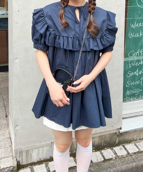 セーラー襟のようなBIGカラーがポイントのチュニック。チュニックなのでボトムスにデニムパンツなどレイヤーしても可愛い♡♡ 低身長さんは1枚でも着用可能!! 前後どちらでも着用可能なのでお好みの着方で楽しんでください。 ~frunco shopping information~ ▼商品のお気に入り登録 ♡をクリック! 完売カラーの再入荷通知や、ラスト1点の通知、 セール商品の通知、をお知らせします。 ▼ブランドのお気に入り登録 新商品や再入荷など、fruncoのお得な情報を いち早く受け取ることができます。 ぜひご活用ください!