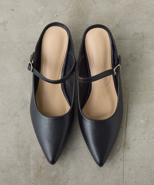 スタイリッシュなポインテッドトゥで、女性らしい足元を演出してくれるヒールミュール。ポイントになるアッパーのストラップは調節が可能な仕様です◎カジュアルなデニムパンツから、落ち感のあるレディなトロミパンツまで幅広く好相性。ヒールがそこまで高くないので、デイリーユースにもオススメです。※撮影場所やお使いのモニター環境により若干お色味が異なる場合がございます。特にロケの撮影では明るく見える傾向にございます。 ※予約商品はサンプルで撮影をしております。若干の仕様が変更になる場合がございますので予めご了承の上ご注文くださいますようお願いいたします。