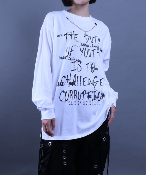 Hard Graphic T-Shirt with Necklace/ハードグラフィック ネックレス付き 長袖Tシャツ ロンT ストリート 蝶柄 バタフライ柄 ストリート 韓国