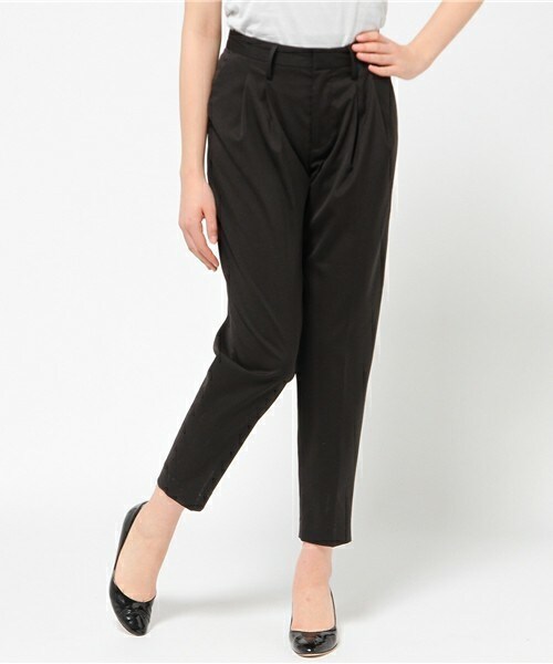 穿き心地の良い素材を使用したスラックスパンツです。太もも周りには適度なゆとりを持たせ、膝下からテーパードをかけてすっきりとした丸みのあるシルエットにしています。腰骨の位置で履いてシャツをインしてもバランスがよく、Tシャツなどカットソーをアウトで着こなしてもいいです。足元はスニーカーでもトレンドのプラットフォームサンダルなど様々な靴との相性も良いです。