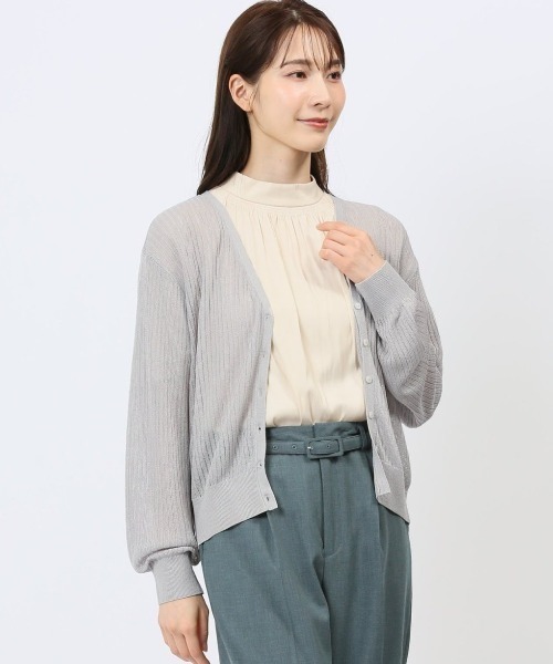 ■素材特徴 レーヨンにナイロンを混紡した薄手のシアーニットです。縦のラインを際立たせたリブ編み、涼しげな透け感、ラメ糸による上品な光沢感、サラッと軽い着心地が特徴です。 ■機能 【ストレッチ】伸縮性に優れ動きやすく、長時間の着用もストレスフリー。 【ハンドウォッシャブル】手洗いが可能なので、清潔に着ていただけます。 ■デザイン 羽織りとしてもプルオーバーとしても着回せる、ニットカーディガンです。すっきり見えるVネックとコンパクトな着丈がポイント。外出時の日焼け防止や屋内の冷房対策にもおすすめです。 ■シルエット 幅広い年代の方に着ていただけるベーシックなシルエットです。 ■コーディネート ハイウエストとのボトムやボリューム感のあるスカートと相性抜群。キャミワンピの上に羽織ってもバランス良くまとまります。 フィット感:標準 シーズン:初秋 展開カラー:グレー・黒(ブラック)・ベージュ・ライトグリーン *アテンションタグ・洗濯ネームを御確認の上、着用又は取り扱い下さい。 *光の当たる場所や高温多湿になる場所での保管は避けて下さい。 *使用の有無に関わらず、経年劣化は進行いたしますのでご了承下さい。 *閲覧デバイス・環境により質感・色味に誤差が生じる場合がございます。 * ZOZOTOWN お買い物ガイド 商品のお気に入り登録 ♡をクリックしましょう!完売カラーの再入荷通知や、ラスト1点の通知、セールの通知をお知らせします。 ブランドのお気に入り登録 新商品や再入荷など、いち早くお得な情報を受け取ることができます。 最短で翌日お届け 商品をカートに入れた後、注文内容の確認ページで「即日配送」を選択していただければ、最短でご注文した翌日にお届け致します。 (ZOZOTOWNお買いものガイドをご参照ください)