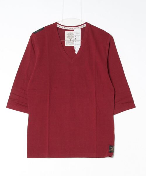 ラフィ―天竺を使用。7分袖のVネックTシャツです。ネック裏はオリジナルテープのタコバインダーが施してあります。製品で洗いをかけてあるので、洗濯時の縮みはありません。