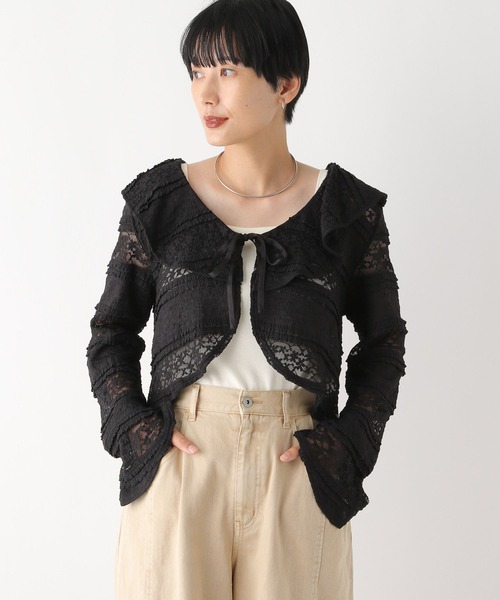 今年らしい表面感がポイントのレースボレロ 【デザイン】 柔らかいタッチのジャガードレース素材を使用したアイテムです。カットソーなので襟や袖の立体感もポイントになっており、着丈が短い分、甘すぎずに着れるのも◎ 【スタイリング】 ・デニムやロゴTシャツなどカジュアルなアイテムと合わせて甘辛スタイルがおすすめです。 --------------------------------------------------- 【気になる商品はお気に入り登録がおすすめ!】 ・在庫残りわずか ・再入荷 ・セールの情報 などの通知を受け取ることができます。 気になる商品は♡をクリックして、 「お気に入り登録」しましょう! 【ショップ・ブランドのお気に入り登録も!】 新商品や再入荷、セール、クーポンの配布など、 いち早くお得な情報を受け取ることができます。 ---------------------------------------------------