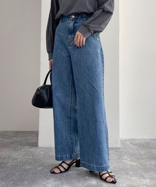 ◇fredy emue◇ 【2024 AW】 セイミワイドのシルエットが綺麗なデニムパンツ ●point ・毎シーズン人気のセミワイドデニムが再登場! ・ハイウエストで脚長効果が得られるこだわりの美シルエットのデニムパンツです ・セミワイドの広がり過ぎないシルエットが綺麗で、大人な着こなしができる1本! ・しっかりとしたデニム生地でありながら、ごわつきのない柔らかな履き心地が魅力 ・定番のブルーとサックスブルーの2色展開です ・カジュアルコーデにはもちろん、女性らしいシルエットを生かしたカットソーやブラウスを合わせたキレイ目コーデにもおすすめです 透け感:なし 裏地:なし 伸縮性:なし 光沢感:なし 洗濯:手洗い可 ●お取扱い上のご注意● *商品を長くご愛用していただきたいため、アテンションタグがある場合は必ずご確認の上、着用又はお取り扱い下さい。 *画像の商品はサンプルとなりますので実際の商品と仕様(主にファスナー・釦等の付属品)、加工、サイズが若干異なる場合がございます。 *店頭及び屋外での撮影画像は、光の当たり具合で色味が違って見える場合があります。商品の色味は、スタジオ撮影の画像をご参照下さい。 *商品画像に関しては出来る限り忠実に表示出来るよう努めておりますが、お客様がご利用のモニターの設定及び特性により、実際の商品と比較し色味に若干の誤差が生じる場合があります。 *製品洗い加工の商品は、多少の歪み、シワなどが見られたり、風合いやサイズ等が1枚1枚異なります。汗や雨等で濡れた時や、摩擦により色落ちし、他の衣料を汚すことがありますので(特に濃色のもの)ご注意ください。 *この製品はインディゴ染めです。他の製品では味わえない自然な風合いがあり、洗っていくごとに独特の色落ちの変化を楽しめます。 ※サンプルでの採寸のため、サイズ表はあくまで目安となります。予めご了承ください。 ◇商品のお気に入り登録◇ 【お気に入りに登録 ♡マークをクリック】を是非ご活用ください! 再入荷の通知や、ラスト1点の通知、セールの通知がいち早く届きます。 ◇ブランドのお気に入り登録◇ 新商品や再入荷など、いち早くブランドのお得情報が届きます。