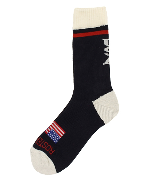 日本製、吸水速乾素材を使用 ロスターソックスは、2012年にスタートした日本のブランド。セレクトショップを中心に人気を博しています。プロダクトは、ほぼすべてが日本製で、上質なクオリティと、どこか気の抜けた、そしてシャレの効いたデザインが特徴。ソックスが脇役ではなく、コーディネートの中心になる日を目指す、というコンセプトもあります。 ロスターとは野球用語で「一軍登録」を意味し、靴下という分野で「日本製のスポーツソックス」を武器に一軍で活躍する、そんな熱い思いが込められています。 パンツをロールアップしてソックスを少し見せることで、足元の印象が大きく変わります。もちろんスカートで合わせるのもグッドです。サイドやバックから見ても記憶に残るデザインは、もちろん計算されたもの。アメカジやスポーツファッション、スニーカーとの相性が抜群です。 24cm:23cm~25cm目安27cm:25cm~27cm目安
