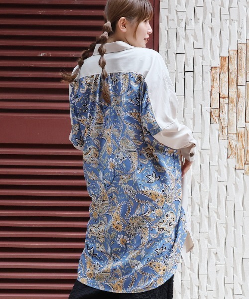 大人可愛い後ろ姿に♪ドッキングワンピース■デザインライトアウターにピッタリな2種類の素材を組み合わせたシャツワンピース。定番のペイズリーとボタニカルな柄を融合させた可憐なバックデザイン♪内側に入った切り替えで、スッと細見えするのが嬉しいポイントです☆袖はドルマンスリーブを採用し、動きやすく女性らしい華奢な印象を与えます。■サイズ感レディースフリーサイズたっぷりとしたオーバーサイズシルエット。■素材感全体的に柔らかく軽やかな生地感。柄部分は薄手でふんわりと広がります。■スタイリング季節の変わり目には、Tシャツやキャミソールの上からサッと羽織って着るのが◎パーカーの上から羽織って大人カジュアルに仕上げることもできます。ワンピースの上から合わせるのもおすすめ◎■カラーベージュ/カーキ■お手入れ洗濯機可/ドライクリーニング---------------------------------透け感:やや透ける伸縮性:なし裏地 :なし光沢 :なし生地の厚さ:普通ポケット:あり---------------------------------【TITICACAのお買いものをお楽しみいただくために!】▼商品のお気に入り登録完売カラーの再入荷通知や、ラスト1点の通知、セールの通知も受け取ることができます。▼ブランドのお気に入り登録新商品や再入荷など、いち早くブランドのお得な情報を受けることができます!