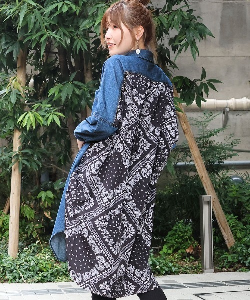 背中のバンダナ柄とデニムでカジュアルに着られるシャツワンピース ■デザイン シンプルなデニムシャツ×存在感のあるバンダナ柄をドッキングさせた1枚。 定番の2つを合わせることで、コーディネートがしやすく個性も放つ嬉しいデザインに仕上げました。 背中は細かくタックを入れて柔らかな素材にすることで、動きを生み出し大人っぽさを演出。 長袖なので腕まくりをすれば長いシーズン着回せて、季節の変わり目には軽アウターとしても活躍します。 ■サイズ感 レディースフリーサイズ たっぷりとしたトレンドのオーバーシルエット。 ■素材感 柔らかく軽い着心地のライトオンスデニムを使用。 柄部分はエアリー感のある薄手の素材を採用しました。 ■スタイリング カーゴパンツとゆったりとしたTシャツと合わせれば、今っぽいストリートスタイルに。 中にフーディーを入れて、着るのもおすすめです。 ボタンを閉めてワンピースにするなら、足元はサイドゴアブーツと合わせると◎ ■カラー ブルー/インディゴ ■お手入れ 洗濯機可/ドライクリーニング --------------------------------- 透け感:透けない 伸縮性:なし 裏地 :なし 光沢 :なし 生地の厚さ:普通 ポケット:あり --------------------------------- 【インディゴ製品のお取り扱い注意】 この製品はインディゴで染料を使用して自然な風合いに仕上げております。 洗うたびに変化する表情をお楽しみください。 ・洗い加工を施し独自の色合いを表現している為、製品により色にばらつきがあります。 ・洗濯により色落ちしますので、他のものと一緒に洗わないでください。 ・汗など湿った状態や着用中の摩擦により、他の物に移染する恐れがあります。 お取り扱いの際は十分にご注意ください。 【TITICACAのお買いものをお楽しみいただくために!】 ▼商品のお気に入り登録 完売カラーの再入荷通知や、ラスト1点の通知、セールの通知も受け取ることができます。 ▼ブランドのお気に入り登録 新商品や再入荷など、いち早くブランドのお得な情報を受けることができます!