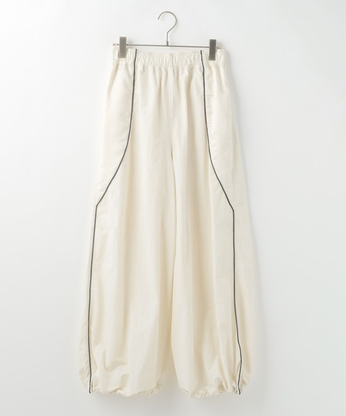 ■デザイン■ 高密度による程良いツヤ感としなやかな風合いで軽やかに着こなせる ナイロン素材を使用した今年らしいスノーパンツ。 サイドにサテン素材を使用した脇のパイピングコードがポイント。 裾をドロストさせてボリューム感の調節も可能です。 ウエストはゴム仕様なのでリラックス感を感じられるアイテムです。 ■スタイリング■ Tシャツなどのカジュアルなスタイリングはもちろん、甘めのアイテムと合わせたMIXスタイルもオススメ。 コンパクトなトップスと合わせるとより今年っぽいスタイリングになります。