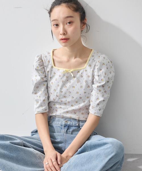 フロントのちょこんとしたリボンがポイントのプルオーバー。 程よく身体にフィットし、コンパクトで今年らしいデザインです。 さらにパフスリーブで女性らしさをプラス。 深めのスクエアネックはお顔まわりをすっきりと見せ、スタイルアップ効果あり◎ カジュアルなボトムス合わせがおすすめです♪ ※モデル着用画像は光の当たり具合で色味が違って見える場合がございます。商品の色味は物撮りの画像をご参照ください。 ● earth music&ecology ● (アースミュージック&エコロジー) 「いいことある服。」 たかが服。されど服。波風の多い日々のなかでもほほえんで前を向くあなたを、つつんで一緒に歩きたい。 いいことあるかも。そんな期待までまとえる服をあなたに。 earth music&ecologyは、毎日を頑張る女性たちをちょっと前向きにするブランドです。 ▼ 商品のお気に入り登録がおすすめです ▼ 商品ページ内の「♡」ハートマークをクリック。完売時の再入荷や、最後の1点の通知、コーディネート画像がアップされたとき、お得なお値下げの際の通知を受ける事ができます。 【お知らせ】ページでも通知が確認できます。