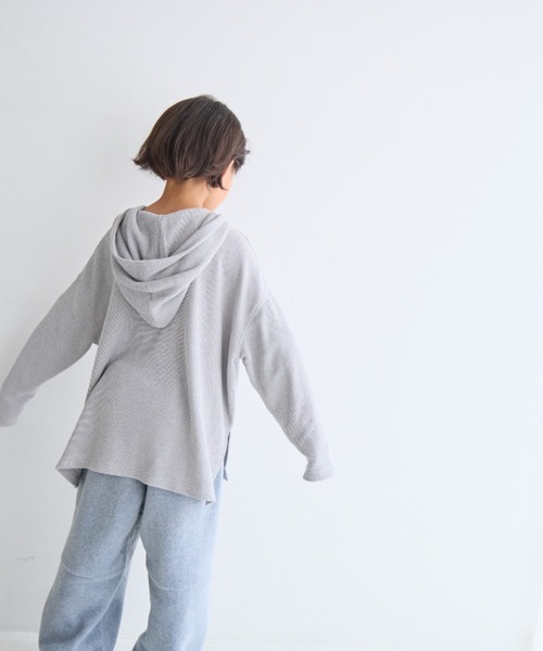 ■デザイン&スタイリング■1枚着としてはもちろん、インナーとしても使える薄手のワッフルフーディー。ゆとりのあるシルエットで1枚で着ても様になるように、全体のバランスにこだわった1枚。ベーシックカラーなのでスタイリングに取り入れやすいのもポイント。