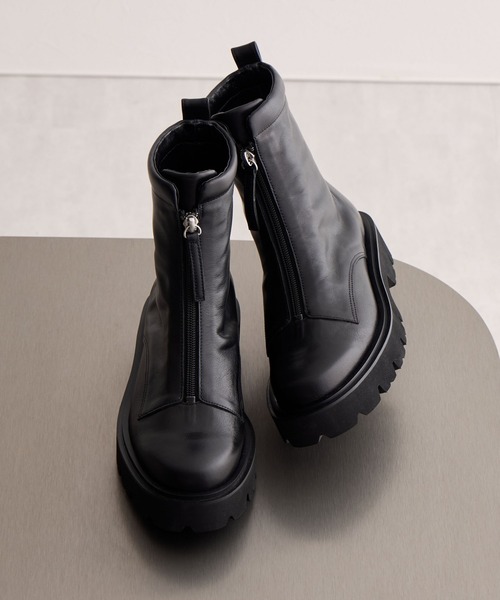 HIMIKO 2024 AUTUMN&WINTER COLLECTION ■■フロントジップがアクセントになったトラックソールブーツ■■ ボリューム感のあるトラックソールと、ソフトスクエアトゥデザインが履くだけでモードな大人の足元に。 スキニーなど細身のボトムをインしたり、ワンピースの外しアイテムとしてもおすすめ。 トラックソールは安定感のある履き心地で 機能性の高さはもちろん、ボリュームソールでスタイルアップも叶います。 センタージップで着脱のしやすさも嬉しいポイントです。 ※画像の商品はサンプルです。実際の商品と色味、仕様、加工、サイズ、素材等が若干異なる場合がございます。 《スタッフ着用コメント》 ◆Oさん [足幅:ふつう/甲の高さ:甲薄/外反母趾気味] [普段のサイズ:23] [着用サイズ:23/着用状況:薄めの靴下着用/サイズ感:ぴったり] いつものサイズでOKでした。厚底ですが、見た目に反して軽量なのとすっきりしています。最初は革がかちっとしていましたが、すぐになじみました。甲でしっかりホールドしてくれるので、普段かかとが脱げやすいんですが、抜ける感じがありません。履くだけで今っぽいスタイルになるのでお気に入りです。 *…*…*…*…*…*…*…*…*…*…*…*…*…*… <機能> ■あたたかい ■つま先裏クッション(つま先の甲裏部分にスポンジ素材を使用することで、足あたり柔らかです。) ■中底クッション(中敷きの下に衝撃を吸収するクッション入りで疲れにくい仕様です。) ■ノンスリップ中敷き(足の前滑りを防ぐ中敷きを使用しています。) ■抗菌防臭中敷き(抗菌防臭加工を施した中敷きを使用しています。) ■ALL WEATHER(撥水仕様) ●ヒール高: 4cm ●素材: 牛革 ●原産国: 日本 ●幅: E ●お手入れ方法 ≪スムース,ガラス 撥水機能付き≫シューキーパーなどで履きしわを伸ばし、しわの間の汚れを取りやすくします。靴用ブラシ(毛先が柔らかい天然毛のブラシが便利です)で表面のホコリや泥を落とします。柔らかい綿布を用いて、靴クリーナーで汚れを落とします。クリームは全体へ伸ばし、余分なクリーナーが残らないようふき取ってください。乾拭きすると光沢が出ます。 撥水効果は永久ではありません。使用頻度や経年によって撥水性能の低下が感じられた際は、防水スプレーをかけて乾かしてください(30秒程度)。かけすぎや、至近距離からのスプレーは変色、変質の原因となる場合がありますのでご注意ください。 【お買い物便利機能のご紹介】 ◆商品のお気に入り登録◆ カートの♡をクリックすると、完売カラーの再入荷・ラスト1点通知・セール通知を受け取ることが出来ます。 気になるアイテム/カラーに♡をつけておくと、あなたの元にうれしいお知らせが★ ◆ブランドのお気に入り登録◆ 新商品の入荷や、完売アイテムの再入荷など、いち早くブランドのお得な情報を受け取ることができます。 卑弥呼ブランドの最新情報が知りたい方はぜひお気に入り追加してみてください。
