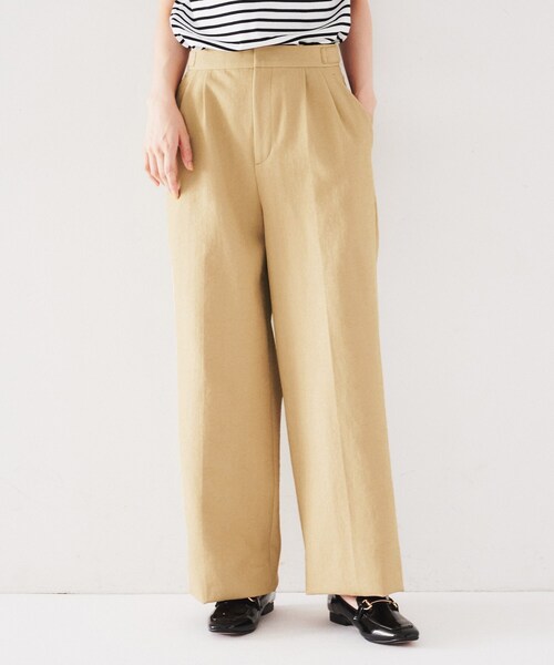 【ブランド公式Insta LIVE 9/6(金)着用予定商品】【デザイン】しわになりにくい素材を使用したセンタープレスのキレイめワイドパンツ。カルゼの表面感が単品性もあり、ウエストのベルトディティールがアクセントになるのでトップスをインしても映えるパンツです。後ろベルトはゴム仕様なので楽な穿き心地。ワイドパンツでも腰回りがスッキリとした美脚見えパンツです。※ポケット数:横×2 後ろ×2【素材感】ポリエステル100%のカルゼ素材。中空糸を使用している事で、まるで着ていないかのような非常に軽量なのが特徴です。さらっとドライタッチな風合いで肌離れの良い素材になっております。※オフホワイト(003)のみ裏地あり【着こなしポイント】楊柳ラメシフォン プリントブラウス(153‐89313)をインしたり、コットンミニウラケ(153‐19313)とのラフなスタイリングなど着回し力の高いワイドパンツです。※照明の関係により、実際よりも色味が違って見える場合があります。また、パソコン・スマートフォンなどの環境により、若干製品と画像のカラーが異なる場合もございます。モデル情報:身長161cm B79 W58 H86 着用サイズ:02(M)店舗へのお問い合わせ商品番号:153-69320●製品寸法:00(XS):W65cm H97cm 股下64cm 前股上28cm 渡り幅32cm 裾幅26cm01(S):W68cm H100cm 股下72cm 前股上29cm 渡り幅33cm 裾幅27cm02(M):W72cm H104cm 股下72cm 前股上29cm 渡り幅34cm 裾幅28cm03(L):W75cm H107cm 股下73cm 前股上30cm 渡り幅35cm 裾幅29cm04(2LT):W78cm H110cm 股下73cm 前股上30cm 渡り幅36cm 裾幅30cm42(2L):W82cm H114cm 股下72cm 前股上31cm 渡り幅38cm 裾幅31cm44(3L):W86cm H118cm 股下72cm 前股上32cm 渡り幅39cm 裾幅32cm46(4L):W90cm H122cm 股下72cm 前股上33cm 渡り幅40cm 裾幅32cm48(5L):W94cm H126cm 股下72cm 前股上34cm 渡り幅41cm 裾幅33cm50(6L):W98cm H130cm 股下72cm 前股上35cm 渡り幅43cm 裾幅33cm備考: