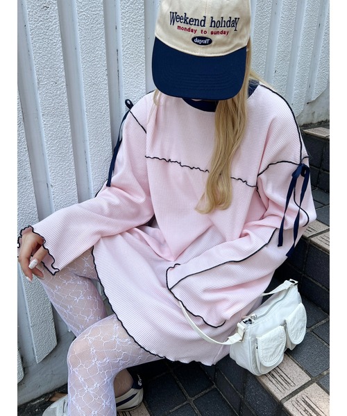 肩リボンがアクセントになるカジュアルロンTeeリラックスなムード漂う大人なガーリースタイルに-fabric&style-WCで大人気のワッフルシリーズの新作登場!ふんわりした生地は着心地が良く一枚で様になる万能トップス。裾や袖をメロウ処理することでガーリーな雰囲気を壊さず着用できます◎ロングスカートと合わせてカジュアルガーリーコーデやリブパンツやフレアパンツと合わせてゆるコーデにも!▼便利なお気に入り登録▼商品のお気に入り登録で、再入荷の通知・ラスト1点・お得なセールの通知を受け取ることができます。ブランドのお気に入り登録で、新商品や再入荷など、さらにお得な通知を受け取れます。《Attention》・撮影場所や照明の照射・角度、お使いのモニター環境により色味や仕様、加工、カラーが若干異なる場合がございます。・商品によっては1~3cm程度の採寸誤差がある場合がございます。・移染等防止のため水や汗で濡れたまま放置することは避けて頂き、濃色アイテムは単体でのお洗濯をお願い致します。・素材臭がある場合は陰干しをお願いいたします。・アテンションタグを必ずご確認の上ご使用下さい。