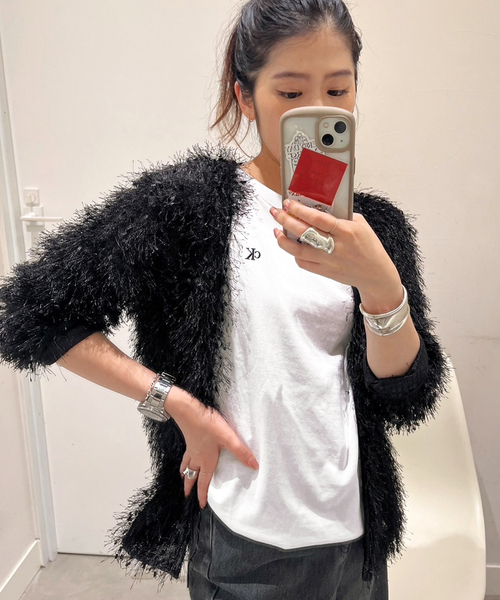 ふわふわの素材感がキュートなノーカラーニットジャケット。ほんのり透け感があり、長めの毛足ですが重たくならず軽く羽織れるアイテムです。ホームケアが出来るので気軽に羽織っていただけます。デイリースタイルの外しに、是非取り入れたいライトアウターです。※照明の関係により、実際よりも色味が違って見える場合があります。またパソコン・スマートフォンなどの環境により、若干製品と画像のカラーが異なる場合もございます。※商品の色味は、商品アップ画像をご参照ください。本体:手洗い可能