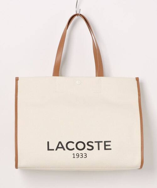 クラシックな素材感とバイカラー―のパイピングが目を惹くエレガントなトートバッグ・ハイクオリティなコットン素材・パイピングを配色で切り替えたバイカラーデザイン・15インチノートPCも収納可能な大容量・コントラストカラーでスタイリッシュな印象の【LACOSTE1933】プリント・小物の整理に便利な内側のジップポケットサイズ:40 x 29.5 x 18cm