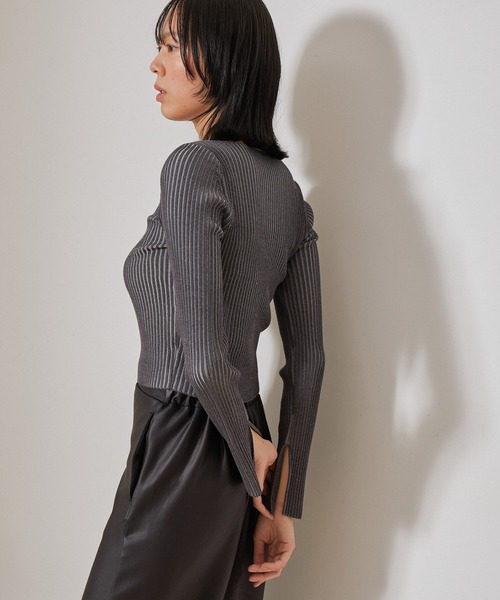 【デザイン・シルエット】 柔らかさ、ストレスフリーなストレッチ感とドライなタッチが特徴のオリジナル開発ニット。 特殊な糸で近赤外線と紫外線をしっかりとカットしてくれるのでお肌に優しいのが魅力的です。細めのリブから色が見えることで奥行きのある見え方に。 ニットの編み地を引き立たせるコンパクトなサイズ感が魅力的なトップスです。 浅めのボートネックがデコルテをきれいに見せてくれます。 袖のスリットがレディライクな印象に。 【スタイリング】 タイトスカートなどレディライクなスタイリングからデニムやワイドパンツまで相性の良いアイテムです。 コンパクトなシルエットながら、肉感を拾いすぎず程よくフィットするのでボトムを選ばずに着まわしていただけます。 ワンピースやサロペットのインナーとしても◎。 同素材のジップアップリブニット(品番:NJK14200)、リブニットスカート(品番:NJC14200)も展開しています。 【素材】 近赤外線&UVカット 静電気防止、マシーンウォッシャブル可能でイージーケアなのも魅力 ----------------------------- 透け感:なし 裏地:なし 伸縮性:あり 光沢感:なし 生地の厚さ:ふつう ----------------------------- 【着用サイズ】 モデル H168 B77 W57 H85 着用サイズ FREE リブ/カットソー/デザインスリーブ/セットアップ対応 ※実際の商品はお客様のお使いの端末や閲覧環境により、写真と実物の色味や質感が多少異なって見える場合がございます。予めご了承ください。 ※伸縮性に富んだ素材のため、多少のサイズ誤差が生じる場合もございます。