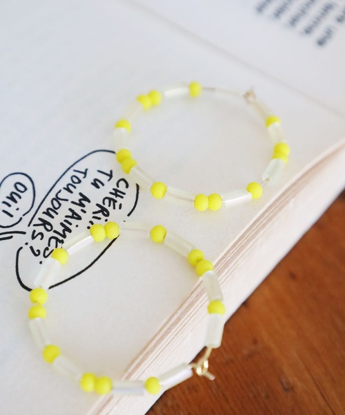耳元にさりげなくアクセントをビーズモチーフが涼し気な印象のフープピアス。程よい大きさがお顔まわりを華やかな印象に。オンオフ問わず、幅広いスタイリングに合わせていただけます。