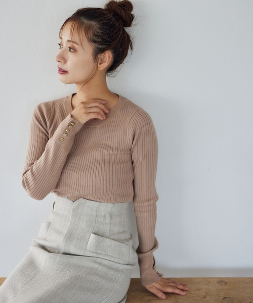 ーーー袖の金ボタンが上品なベーシッククルーネックニットーーー■point・柔らかく手触りのいいニットで、チクチクしないのが魅力・ベーシックカラー展開で取り入れやすく、重宝間違いなし!・シンプルだけど使いやすいクルーネック■stylingきれいめな印象のニットなのでオンオフ使えます。普段使いはもちろん、ジャケットやきれいめパンツを合わせて、オフィススタイル、通勤コーデにもおすすめのニット。1枚着としてはもちろん、カーディガンやワンピースのINにも使える1品です。※屋外の光や照明の当たり具合で、実際の商品の色味とカラー別画像の色味に若干の違いが発生する場合がございます。詳細画像と併せてご確認の上、ご注文いただきますようお願い致します。【INFORMATION】■商品のお気に入り登録完売していても再入荷時に再入荷通知を受け取ることができますので、是非ご登録ください!■ブランドのお気に入り登録新商品や再入荷などの情報を受け取ることができますので、是非ご登録ください!