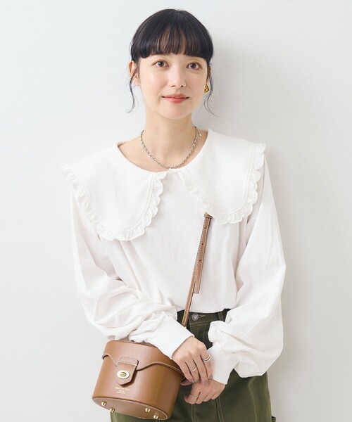 2024 Fall & Winter item 主役にも脇役にもなる万能な丸襟カットソー ●ベーシックながら大きめな丸襟でインパクトのあるスタイリングを演出してくれるトップス ●さりげないフリルデザインがポイントです ●ややゆったりめなシルエットは、1枚着でもインナーとしても使いやいサイズ感 ●袖丈は少し長めで、ルーズな抜け感のある雰囲気に! ●組み合わせ次第で幅広いシーズンで活躍してくれる1着です ========== おすすめコーディネート 一枚ではもちろんのこと、ベストやカーディガンなどとのレイヤードがおすすめ。 そのままでもサマになるデザインなので、デニムやタイトスカートなどとシンプルな組み合わせも◎ 上からスウェットやニットを合わせて襟元を出せば、カジュアルながら女性らしいコーディネートに。 ※こちらの商品は、弊社管理上のカラーを表記しております為、タグのカラー表記と異なる記載となっております。 【サイト表記:タグ表記】 ・オフホワイト:OFF ・グレー:ASH杢 ・サックスブルー:BLU ・プリント/柄:BOD ※掲載画像の商品の色味は、屋外や屋内の光の照射や角度により実物と色味が異なる場合がございます。また表示のサイズ感と実物は若干異なる場合もございますので、予めご了承ください。 ※着用、お取り扱いの際は、商品についている品質表示とアテンションタグを必ずご確認下さい。 【FREAK'S STORE/フリークスストア】 「アメリカの豊かさとワクワク・ドキドキを日本に伝えたい」という想いからスタート。1986年の創業以来、洋服、雑貨、インテリアなど自分たちが本気でカッコ良いと思うものをセレクト。積極的に楽しむ生活体験者=フリークとして、アメリカンライフスタイルの楽しみ方を提案するセレクトショップです。