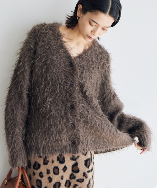 プルオーバーにもなる2WAY仕様のシャギーカーデ トレンドのシャギー素材のニットカーディガン。 大きめ釦がアクセントになったVネックがポイントです。 釦をとめてプルオーバーとしても着られるこだわりのネックライン。 鮮やかなカラーからベーシックカラーまでバリエ豊富な色展開。 目を惹く素材感で主役級のアイテムです。 暖かい素材とボリューム感で冬の始まりはアウター代わりにも。 【スタイリング】 ゆったりとしたサイジングとミドル丈なので、ワイドパンツ合わせで ルージーなスタイルも◎サテンなど艶感のあるボトムと合わせると抜け感が出ておすすめ。 ロンT合わせでカジュアルにまとめてもサマになります。 【素材】 お手入れ方法:クリーニング 思わず触れたくなるフワフワ素材は、ウットリするほど柔らかで肌触りのよい素材を使用。 毛先にカールのある特殊な加工を施すことで、美しいシャギー感を演出。 【原産国】 中国 お買い物をお得にもっと楽しく!上手な活用方法>>> ▼商品のお気に入り登録▼ 完売カラーの再入荷通知や、ラスト1点の通知、プライスダウンしたセール通知も受け取ることができます。 ▼ブランドのお気に入り登録▼ 新作や再入荷等、いち早くブランドのお得な情報を受け取ることができます。 【ご注意】 ※屋外の光や照明の当たり具合で、実際の商品の色味とカラー別画像の色味に若干の違いが発生する場合がございます。 詳細画像と併せてご確認の上、ご注文いただきますようお願い致します。 ※サンプルにて撮影をしておりますので、 実際の商品とは色味・仕様や加工・サイズ等が若干異なる場合がございます。 予めご了承くださいませ。