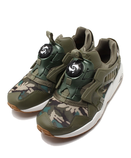 2015Summer(夏)、ライフスタイルコレクションより、ディスクブレイズ CAMOです。 1992年に誕生したDISC SYSTEM(ディスクシステム)はランニングシューズとしてて開発されたのがはじまり。その近未来的なルックスは注目を集め、1990年代後半よりストリートファッションにも取り入れらるようになりました。このDISC SYSTEMはシューレースの代わりに中央部のDISC SYSTEMをまわすことでワイヤーが締りフィッテイングするというイージー オン、イージー オフの構造を持っています。 アッパーには伸縮性に富んだネオ プレーンを使用することで足にフィットし、90年代に開発されたランニングシューズのクッショニング機能を搭載したTrinomic(トライノミック)ソールを採用する事で快適な履き心地を実現。 2015年夏シーズンのグラフィックテーマである"カモ柄"をプラスし、トーナルでまとめたシックな印象のルックスに注目です。