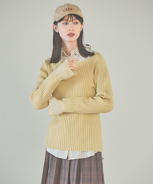 リブ編みで伸縮性のあるベーシックなニットプルオーバー。 やさしくフィットしつつも、ボディラインをひろいにくいリブ幅やサイズ感にこだわった仕上がりの1枚です。 デコルテが綺麗に見えるネックラインに、袖先は編地を変えシアー感のあるデザインに。 アウターのインナーはもちろん、1枚着としても使いやすいデザインのアイテムです。 【素材】 レーヨン×ナイロンのしなやかで、キレイな表面感が特徴の素材。 なめらかでチクチクしない、柔らかな肌触りが魅力のリブ編みニット。 【スタイリング】 ベーシックなデザインなので、合わせるボトムスを選ばずお使いいただけるアイテムです。 ほどよい生地感なので、サロペットや羽織のインナーにもおすすめ